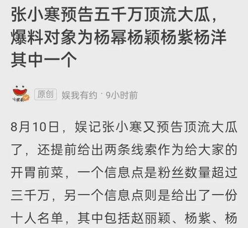 我们来聊聊张小寒这次爆料背后的真相。据了解,张小寒之所以能挖出这么多猛料,是因为他有一位圈内好友,这位好友在娱乐圈有着广泛的人脉。张小寒通过这位好友,得到了很多独家消息。